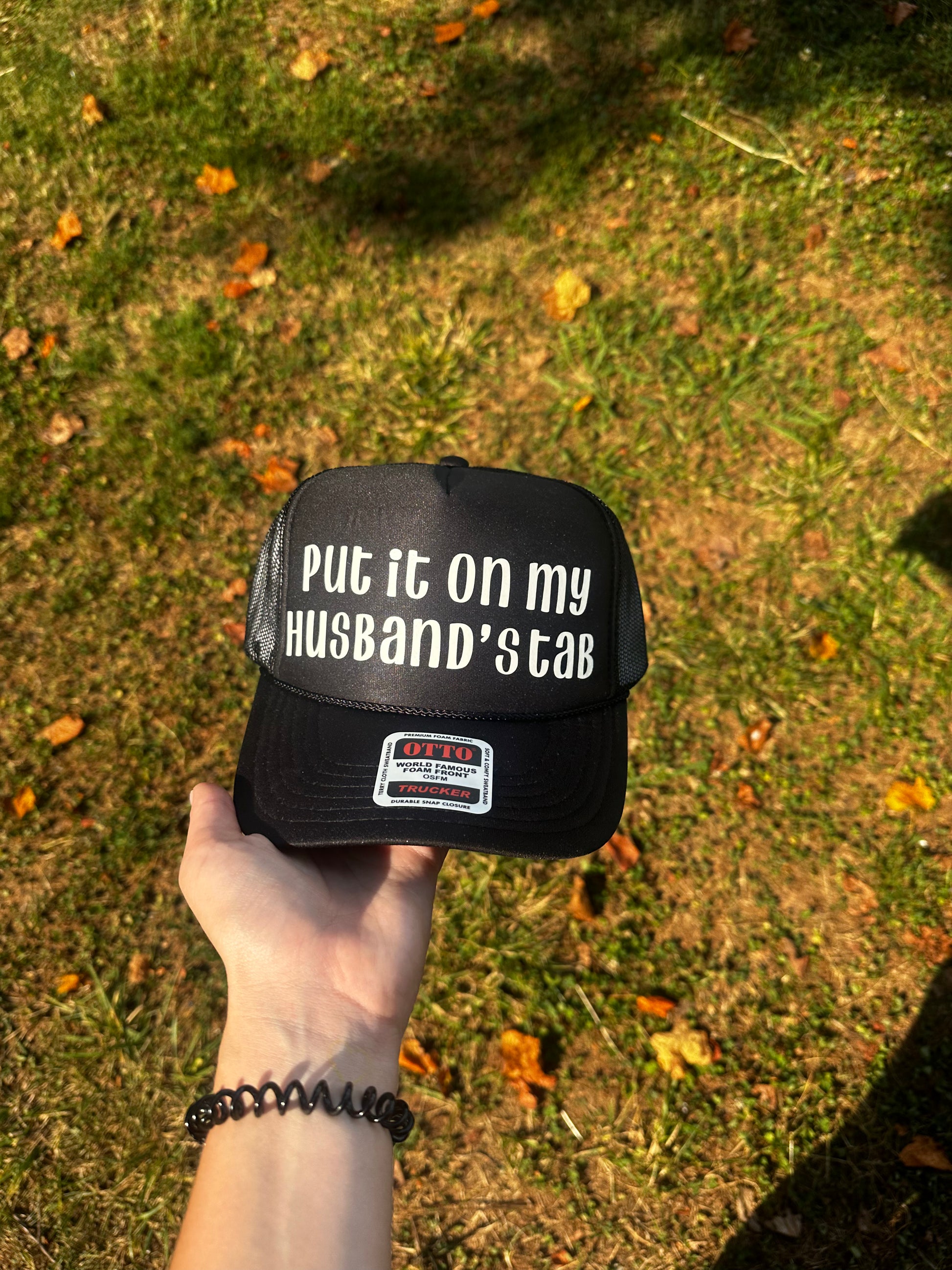 Vinyl “PUT IT ON MY HUSBAND’S TAB” Trucker hat